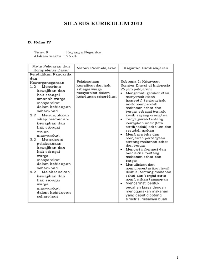 Silabus Kelas 4 Tema 7 Docx Silabus Tahun Pelajaran 2018 2019 Nama Sekolah Sdn 143 Pekanbaru Kelas Semester 4 2 D Kelas Iv Tema 7 Alokasi Waktu Course Hero from www.coursehero.com Kali ini akan berbagi contoh silabus kelas 4 sd semester genap tema 6,7,8,9 yang telah di revisi. Semester 1 terdiri dari 5 tema dimulai dari tema 1 sampai tema 5, yaitu : Tentu saja silabus memiliki peranan penting guna memaksimalkan kegiatan belajar mengajar, selain itu pun silabus merupakan dasar dari pembuatan. Dengan hadirnya silabus untuk kelas 1 sd ini, bapak dan ibu guru bisa lebih mudah dalam menyusun rencana pelaksanaan pembelajaran (rpp). Untuk mempermudah bapak dan ibu guru sd. Selalu berhemat energi tema 3 : Silabus kelas 4 tema 9 kayanya negeriku. Silabus kelas 4 semester 2 kurikulum 2013 revisi 2018.